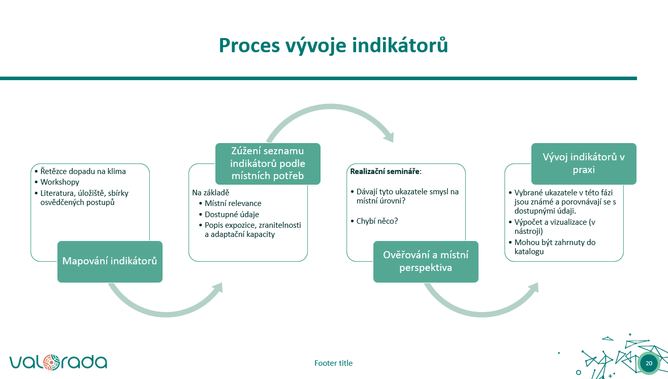 Part of a broader series of workshops designed to extend the reach of the project beyond its core consortium, this session focused on real use cases of VALORADA’s indicators and visualisation tools in cities exposed to urban heat, drought, and hydrological extremes. The event was held in Czech and targeted local planners, decision-makers, and technical staff from municipalities with similar environmental challenges.