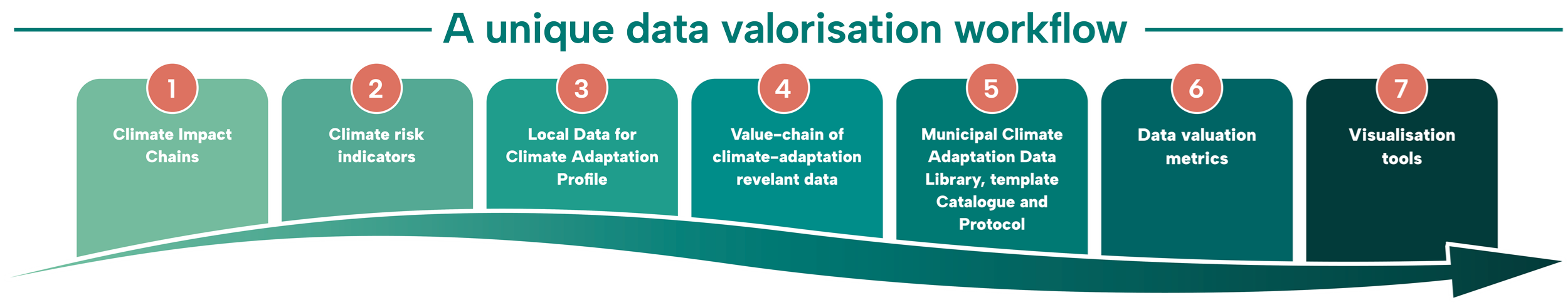 The VALORADA workflow provides a structured and user-oriented approach to transform diverse datasets into actionable knowledge for climate adaptation.